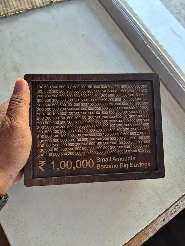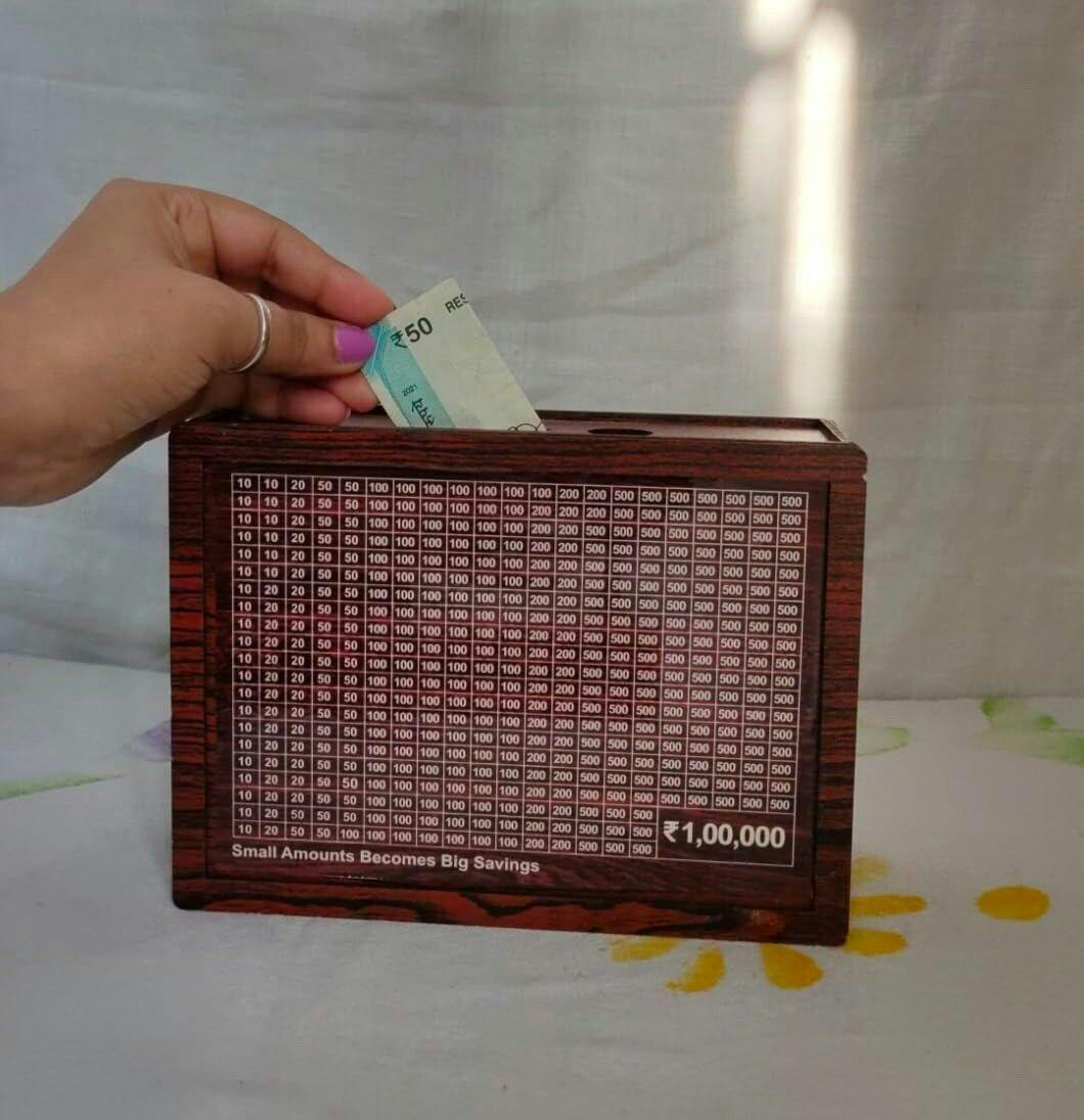 Inspired by the idea of saving ₹1,00,000—one rupee at a time—this box motivates you to turn small contributions into significant savings.